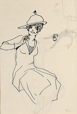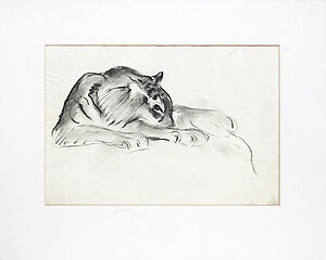 Doppelseitige Rötelzeichnung jeweils o.T. (auf der einen Seite liegender Tiger, auf der anderen Seite Zirkusszene mit Reitern)