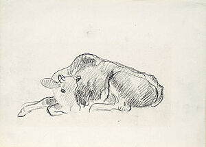 Bleistiftzeichnung: Liegendes Kalb