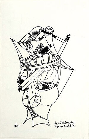 Federzeichnung: "das Gehirn des Herrn Prof- Löh"