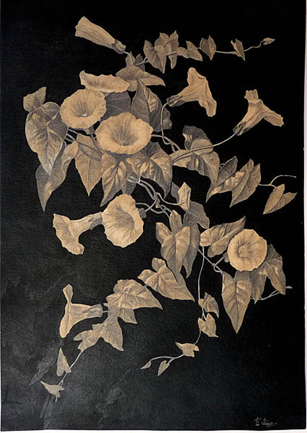 Bleistiftzeichnung / Tusche: Pflanzenstudie (Winde)