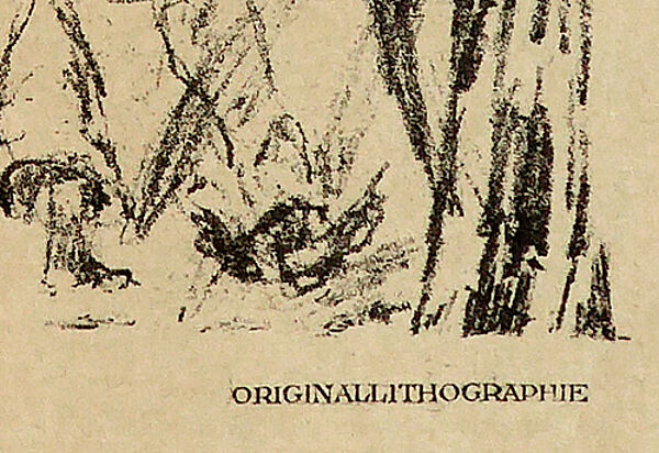 Lithografie auf bräunlichem Papier. Unterhalb der Darstellung typografisch bezeichnet. Blattmae ca. 28,5 x 21,4 cm, Bildmaße ca. 15,4 x 13,7 cm, geringe Alters-, Griff- und Lagerspuren, minimale Bräunung. Am rechten Rand Reste der Bindung (aus "Das Kunstblatt" 10. Jahrgang, herausgegeben von Paul Westheim, Potsdam-Berlin). WVZ Söhn III, 31710. - Rifkind 806.