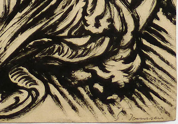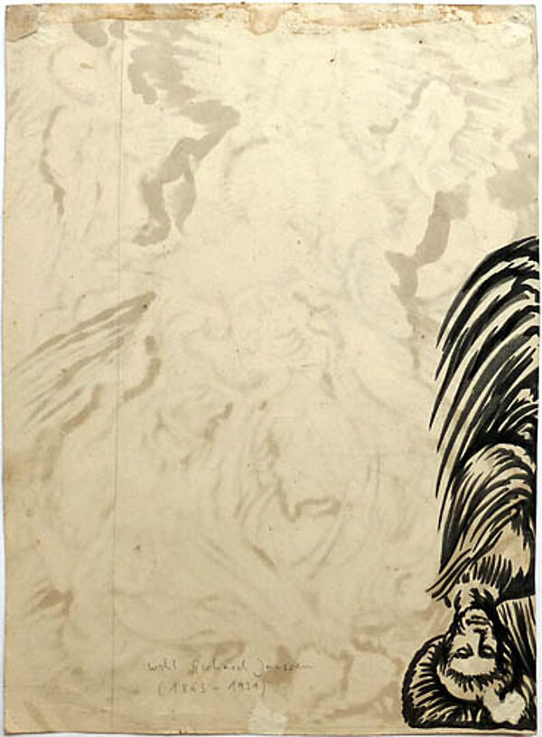 Tuschezeichnung auf chamoisefarbenem Papier, rechts unten mit Bleistift handsigniert "G. Janssen". Blattmaße ca. 31,2 x 22 cm (fixiert auf neuzeitlichem Unterlagekarton von ca. 40 x 30 cm), geringe Alters- und Griffspuren. Wohl um 1918 bis 25.