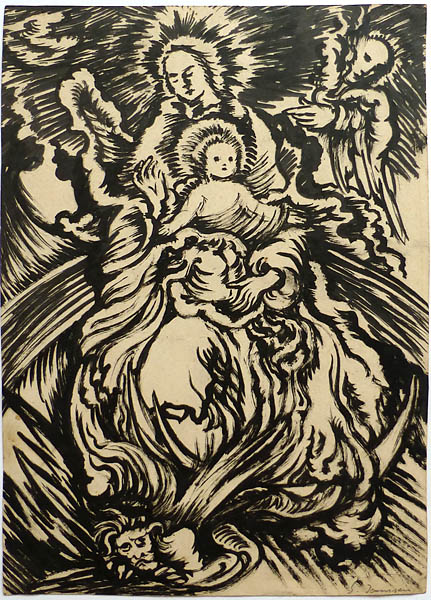 Expressive Tuschezeichnung: ohne Titel (Madonna mit Kind)