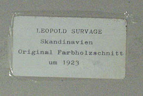 Farbholzschnitt mit den Blattmassen ca. 26,9 x 19,4 cm, Bildmasse ca. 17 x 14 cm, leichte Griffspuren. Gerahmt in antiker, schwarzer Schellackleiste, leicht profiliert. Außenmaße ca. 54 x 44 cm (moderate Gebrauchspuren). Rückseitig typografisch bedruckt, im Stock monogrammiert: "LS", um 1923.