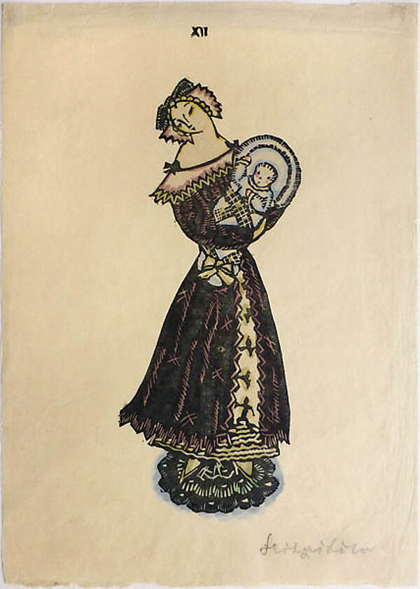 Farbholzschnitt: ohne Titel (Mutter mit Kind)