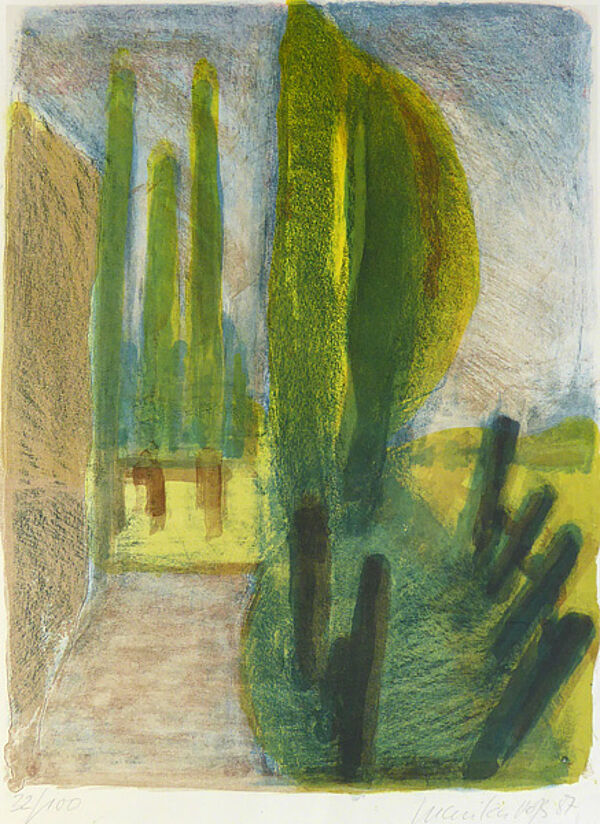 Farblithografie: ohne Titel (Landschaft mit Weg)