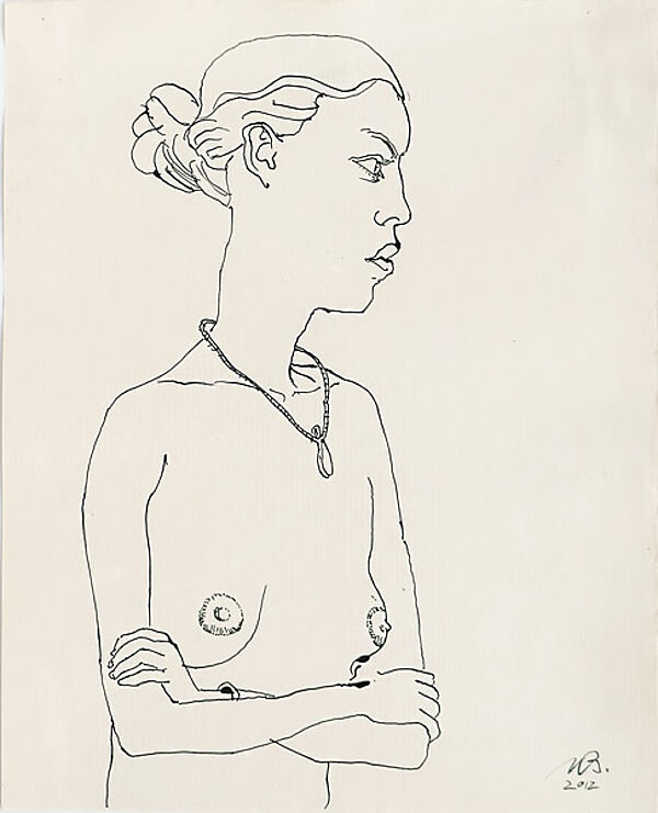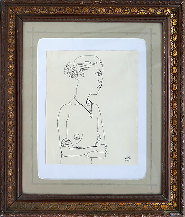 Federzeichnung ohne Titel (stehender weiblicher Halbakt)