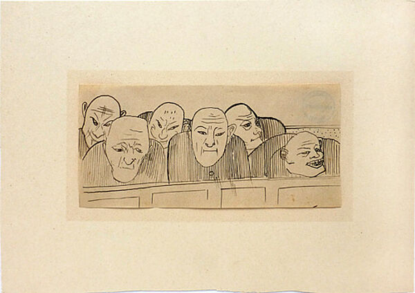 Tusche auf dünnem, chamoisetonigem Papier, montiert auf Pappe. Unsigniert, rückseitig Nachlass-Stempel. Blattmaße ca. 20 x 9,5 cm, geringe Alters-, Griff- und Lagerspuren. Ohne Jahr, wohl um 1930.