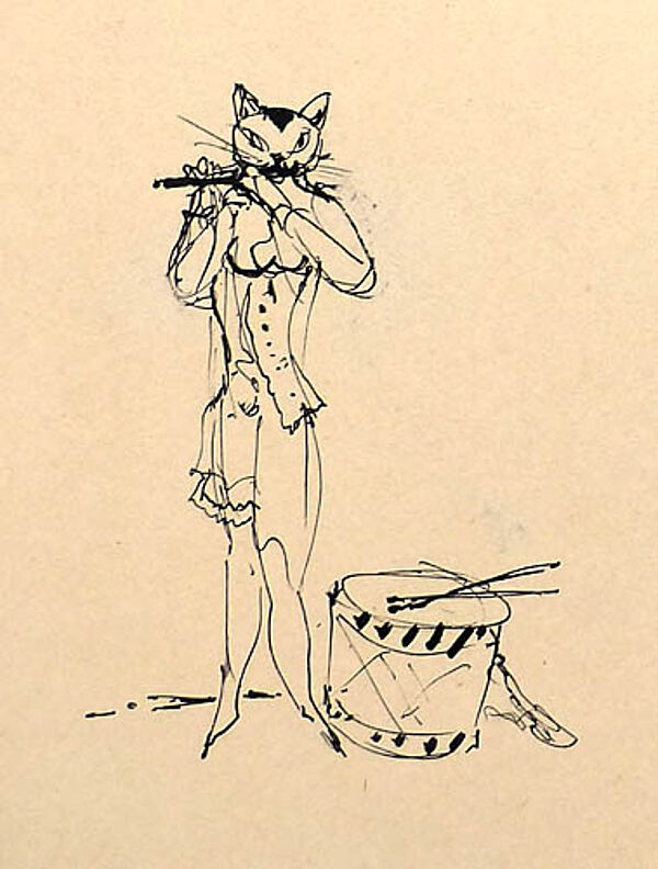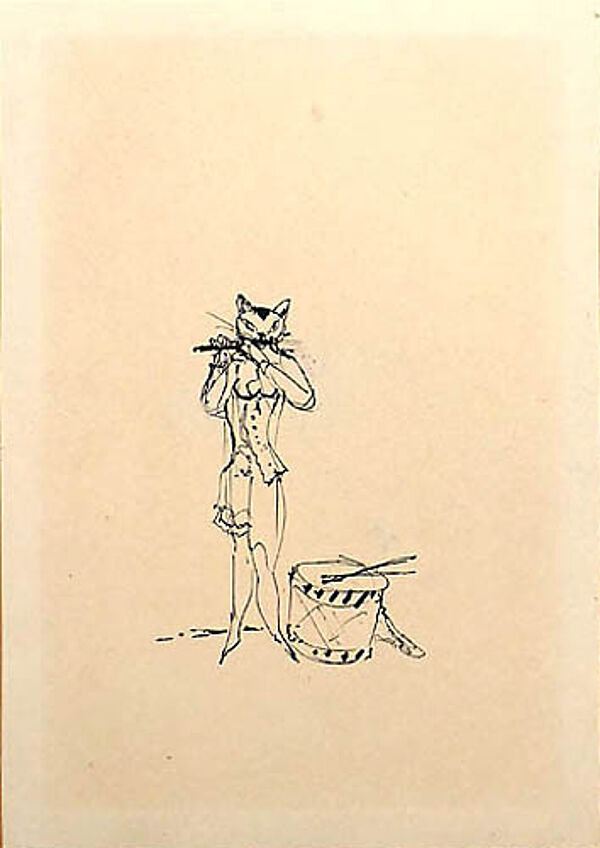 Feine, vollgültige Federzeichnung auf chamoisefarbenem Papier. Rückseitig mit Feder handsigniert. Blattmaße ca. 20 x 14,5 cm, leichte Alters-, Griff- und Lagerspuren, das Papier wirkt leicht nachgedunkelt. Im rückseitigen Randbereich Papierreste einer alten Rahmung. Undatiert, wohl 1950er Jahre. Nach Angabe des Vorbesitzers handelt es sich um eine Illustration zu "Madmoiselle Löwenzorn".