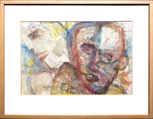 Großformatige Zeichnung in Mischtechnik: o.T. (Kopfstudie eines Paares)