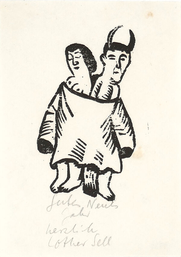Holzschnitt auf dünnem, transparentem, fast weißem Papier, am unteren Rand mit handschriftlicher Widmung des Künstlers, Blattmaße ca. 15,5 x 11 cm, minimal fleckig. Wohl 1970er bis 90er Jahre.