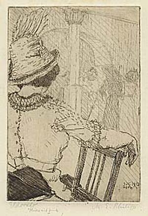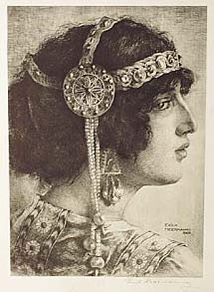Radierung: ohne Titel (Geschmückter Frauenkopf im Profil)