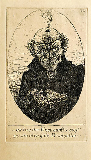 Kupferstich: ohne Titel (Illustration zu Jean Paul: "Des Feldpredigers Schmelzle Reise nach Flätz mit fortgehenden Noten")