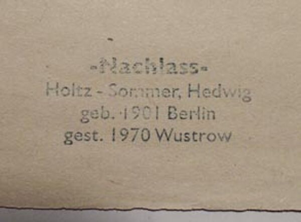 zu Hedwig Holtz-Sommer (Berlin 1901 - Wustrow 1970): H.Holtz-Sommer, eine der bekanntesten Künstlerinnen der Ahrenshooper Künstlerkolonie studierte von 1917-21 an der Kunstgewerbeschule in Kassel, von 1927-29 an der Hochschule für Bildende Künste in Weimar (unter H.Gugg, F.Feigler und W.Klemm), war dort 4 Jahre freiberuflich tätig, heiratete 1934 den Maler Erich Theodor Holtz und ließ sich mit ihm in der Nähe von Ahrenshoop, in Wustrow nieder.