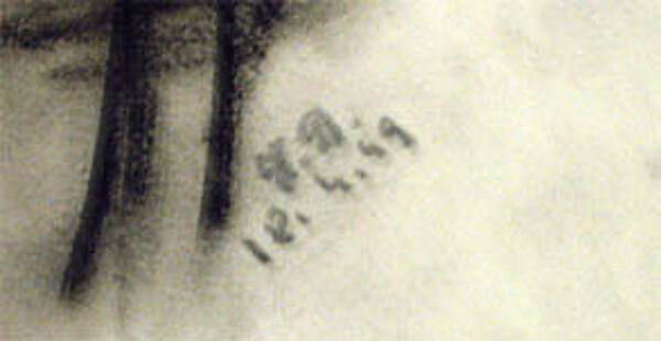 Kohlezeichnung auf chamoisefarbenem Papier. Rechts unten signiert und datiert "18.4.(19)49". Blattmaße ca. 43 x 30 cm, geringe bis moderate Alters-, Griff- und Lagerspuren, insbesondere zeigen sich kleine Eckknicke, kleinste Einrisse im Randbereich und rückseitig Reste von alten Montierungen.