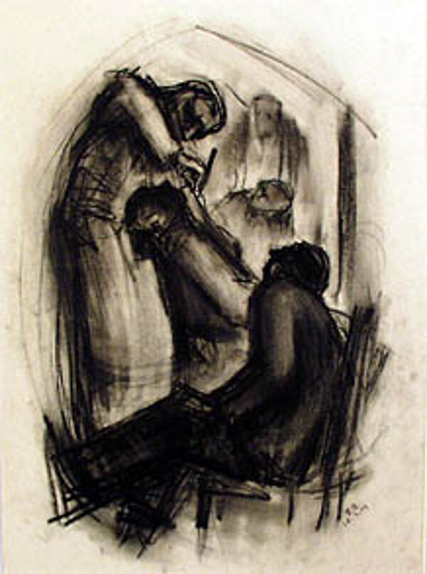 Kohlezeichnung: o.T. (in der Barbierstube)