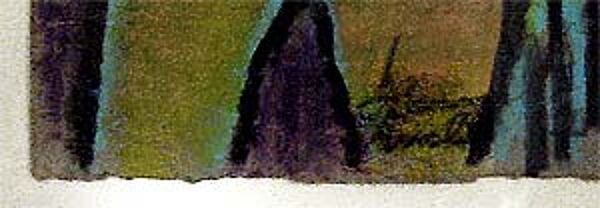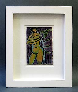 Farbige Fettkreidezeichnung mit den Maßen ca. 15,5 x 11 cm, unten mittig signiert. Rahmung mit einer neuzeitlichen, weißen, einfachen Holzleiste, Maße ca. 32, 5 x 27 cm. Wohl 1960er Jahre.