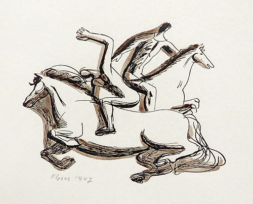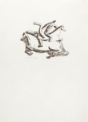 Lavierte Federzeichnung: ohne Titel (zwei Reiter)