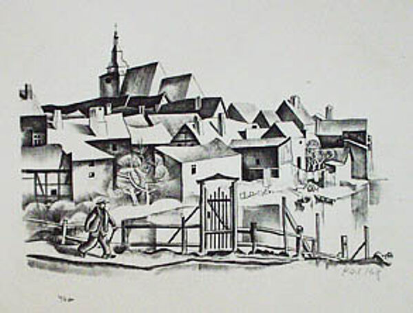Lithografie: Dorf oder Kleinstadt