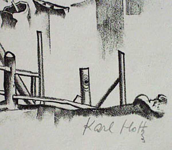 zu Karl Holtz (1889-1978): 1914-19 Studium an der Kunstgewerbeschule in Berlin bei E. Orlik und L.Sütterlin, 1916 erste Karikaturen in Zeitschriften, nach dem I.Weltkrieg vorwiegend in der Proletarischen bzw. linken Presse. 1919 kurzzeitige Verhaftung durch das Freicorps, 1922-23 Reisen durch Italien, Südfrankreich und Tunesien, neben der Arbeit für die Presse Beteiligung an zahlreichen Ausstellungen im In- und Ausland. !939-45 Soldat, danach vorwiegend wieder Pressezeichner. Lit. Künstlerlexikon Vollmer und "Expressive Gegenständlichkeit" von Gerhard Schneider.