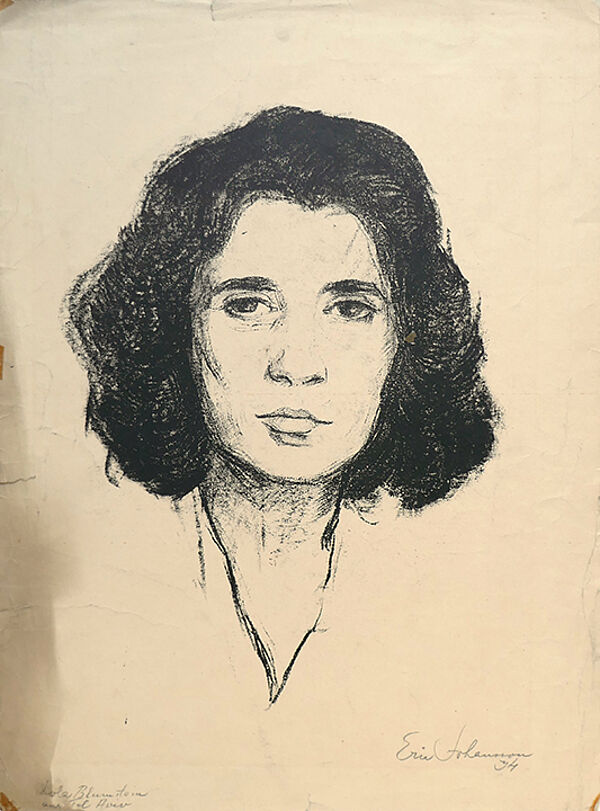 Neusachlich anmutende Lithografie auf chamoistonigem Papier, rechts unten mit Bleistift handsigniert und datiert (19)"34", links unten bezeichnet: Lola Blumstein aus Tel Aviv. Blattmaße ca. 52,5 x 38,5 cm, z.T. Verschmutzung des Papiers, vor allem am linken Rand, ansonsten moderate bis deutlichere Alters-, Griff- und Lagerspuren, so vereinzelt kleine Einrisse und Knickungen am Rand.