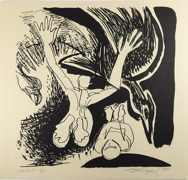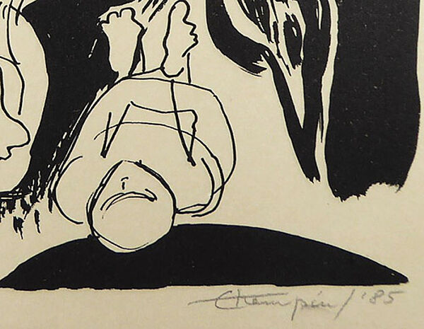 Lithografie auf dünnem Karton, rechts unterhalb der Darstellung mit Bleistift handsigniert und datiert (19)"85", links auflagenbezeichnet "16/25 - VI". Blattmaße ca. 19,9 x 18,9 cm, geringe Alters- und Lagerspuren.