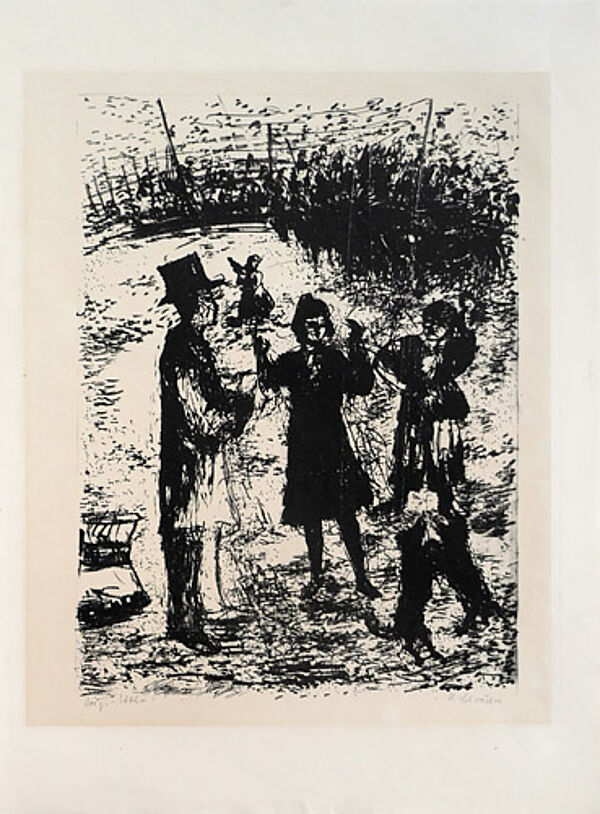 Lithografie auf leicht chamoistonigem Papier, rechts unterhalb der Darstellung mit Bleistift handsigniert, links unter der Darstellung bezeichnet "Orig.-Litho". Blattmaße ca. 47 x 34 cm, geringe Alters-, Griff- und Lagerspuren.