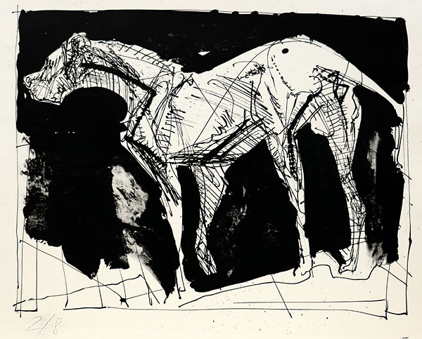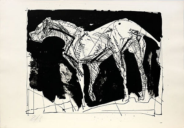 Lithografie auf dünnem Karton, links unter der Darstellung mit Bleistift auflagenbezeichnet "2/8", unsigniert und undatiert, wohl Ende der 1980er, Anfang der 1990er Jahre. Bildmaße ca. 32 x 43 cm, Blattmaße ca. 50 x 35 cm, geringe Alters-, Griff- und Lagerspuren.