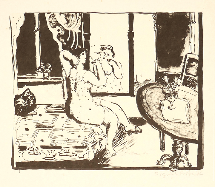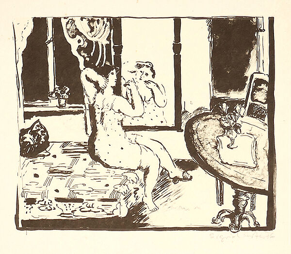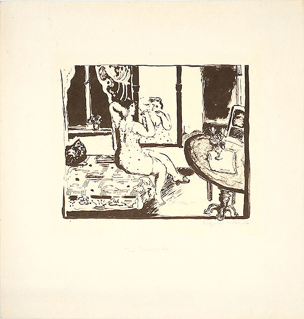 Lithografie: ohne Titel (Frau vorm Spiegel)