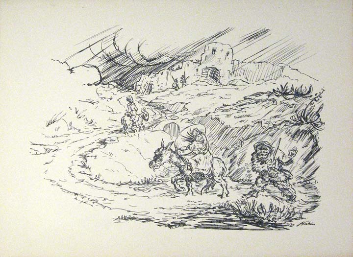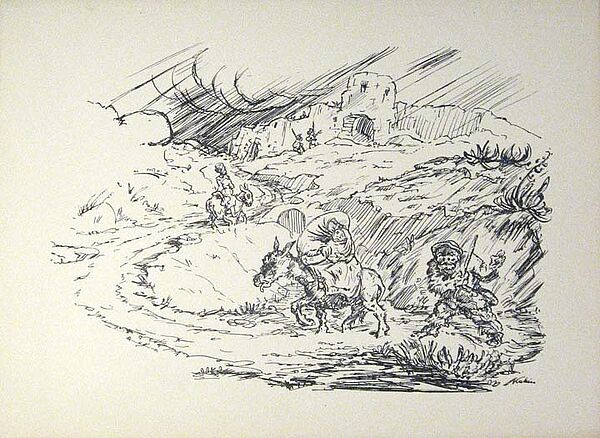 Lithographie "Auf der Flucht"