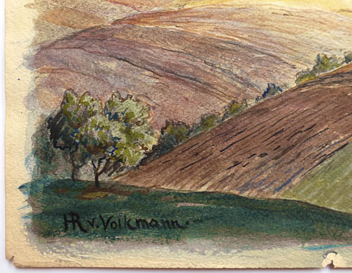 zu Hans Richard von Volkmann: der bedeutende Landschaftsmaler und Graphiker wurde 1860 in Halle als Sohn des berühmten Chirurgen Richard von Volkmann geboren. Er studierte von 1880 bis 84 an der Düsseldorfer Akademie bei Hugo Crola, Heinrich Lauenstein, Peter Janssen sowie Eduard von Gebhardt und war 1888 bis 92 Meisterschüler von Gustav Schönleber in Karlsruhe, wo er dann über viele Jahre freischaffend tätig war. Er war Mitglied der Schwälmer Willingshäuser Malerkolonie, der ältesten Künstlervereinigung in Europa. Auch als Illustrator machte er sich einen Namen, so bebilderte er das bekannte Märchenbuch seines Vaters „Träumereien an französischen Kaminen“ und die für Hallenser wichtigen Bücher „Alt Halle“ und „Verschwundenes und Erhaltenes aus der alten Salzstadt Halle“. Der Künstler verstarb 1927 in Halle.