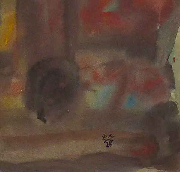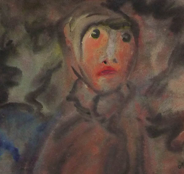 Mischtechnik (überwiegend Gouache) auf chamoisefarbenem Papier, rechts unten monogrammiert und datiert (19)"24". Blattmaße ca. 49,4 x 25,2 cm, linke untere knickspurig, ansonsten moderate Alters-, Griff- und Lagerspuren, rckseitig etwas fleckig.