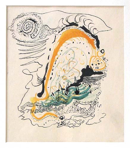 Aquarellierte Tuschezeichnung auf chamoisefarbenem Papier, montiert hinter Passepartout. Bildausschnitt ca. 20 x 17,5 cm, geringe Griff- und Knitterspuren, rückseitig alte Montierungen. Wohl 1920er bis 40er Jahre.