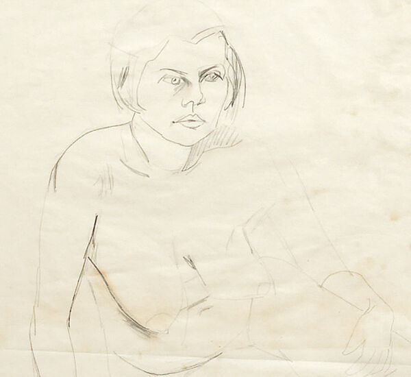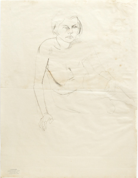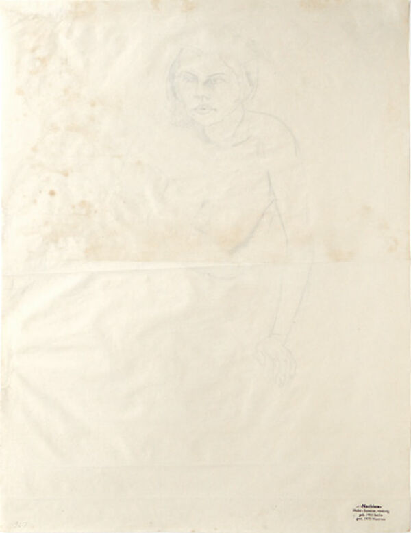 Blei, und sparsam auch Farbstift auf Papier, rückseitig Nachlassstempel. Das Blatt ist relativ deutlich knitterspurig und weist einen Mittelknick auf, auch ist es z.T. leicht fleckig. Blattmaße ca. 59,7 x 46 cm. Wohl 1920er, 30er Jahre.