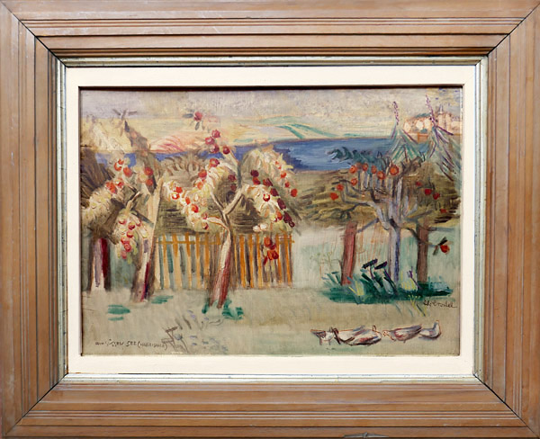 Öl auf Holzplatte, rechts unten signiert, links unten betitelt. Bildmaße ca. 46 x 33 cm, Außenmaße der gegliederten Holzleiste (mit weißem Inlay) ca. 63,5 x 52 cm, geringe Altersspuren, rückseitig leicht stockfleckig. Ohne Jahr, wohl 1930er Jahre.
