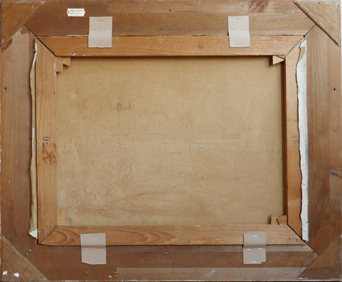 Öl auf Leinwand, unsigniert. Bildmaße ca. 65,5 x 51 cm, Außenmaße der breiten, reliefierten, z.T. hell, z.T. golden gefassten Holzleiste ca. 85 x 69 cm, geringe Altersspuren. Wohl 1920er bis 40er Jahre.