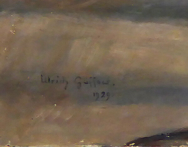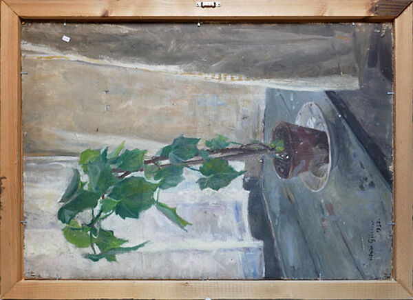Öl auf Pappe, links unten signiert und datiert "1929". Rückseitig Stillleben einer Topfpflanze im Fensterbrett. Bildmaße ca. 72 x 50 cm. Geringe Altersspuren, am Rahmen z.T. deutlicher.