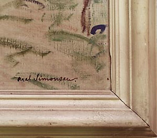 zu Axel Simonsen: geb. 1884 in Hilleroed (Dänemark); Schüler von H. Groenvold; studierte an der Akademie in Kopenhagen unter V. Johansen (1906); Studienreisen nach Paris und Italien 1913; hielt sich seit 1920 jeden Sommer in Italien auf, reiste 1925 nach Frankreich. In zahlreichen Museen vertreten (u.a. Aalborg, Maribo und Tondern). Quellle: Künstlerlexikon: Vollmer bzw. Weilbach.