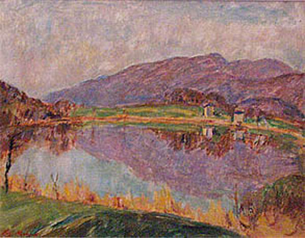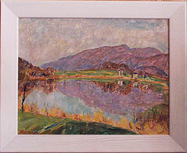 Ölgemälde: ohne Titel (wohl Gebirgs-See im Tessin)