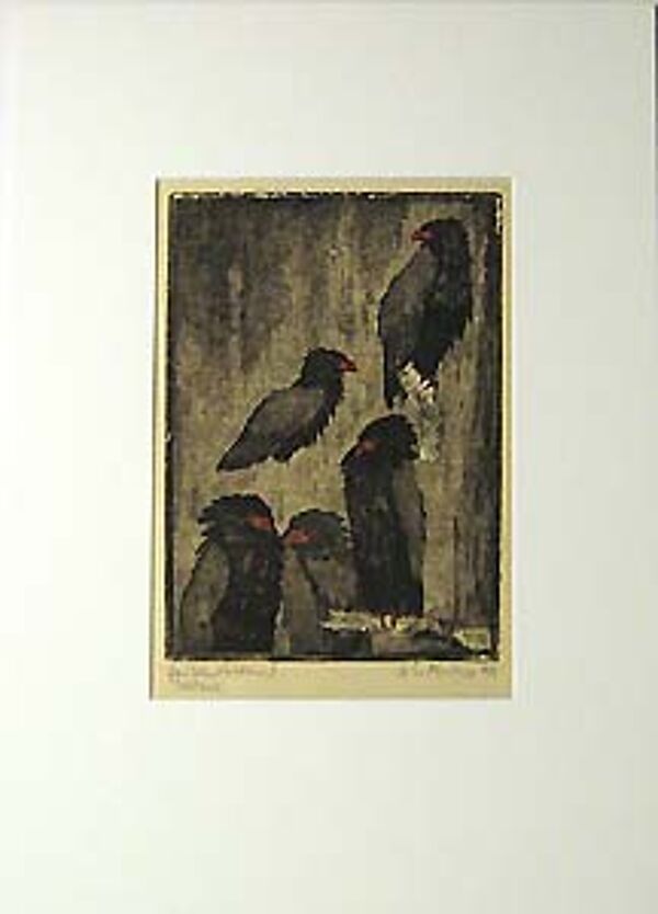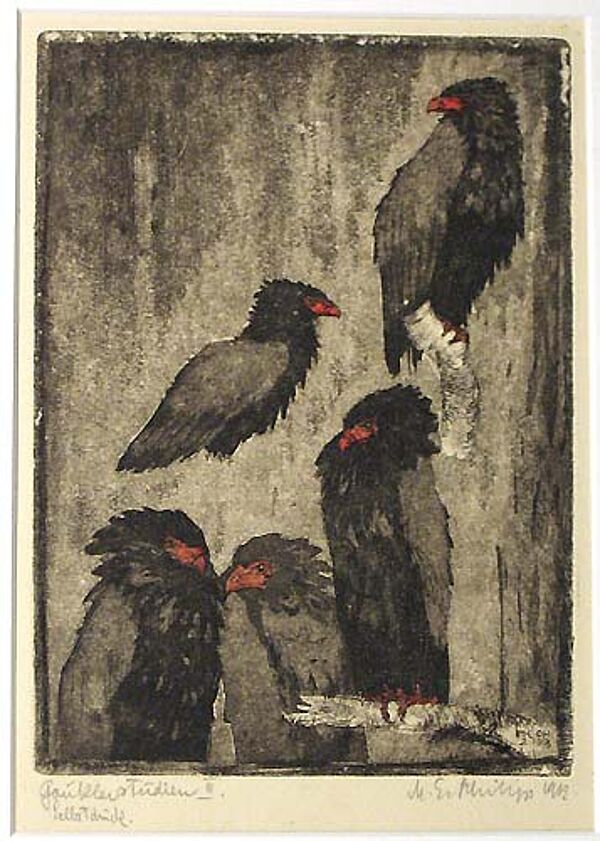 Radierung mit der Plattengröße ca. 17,6 x 12,7 cm, Blattgröße ca. 27,5 x 18 cm, am Passepartout montiert, rückseitig Klebespuren. Mit der Hand bezeichnet "Gauklerstudien III, Selbstdruck", signiert und datiert 2.1913. WVZ Götze A 116.