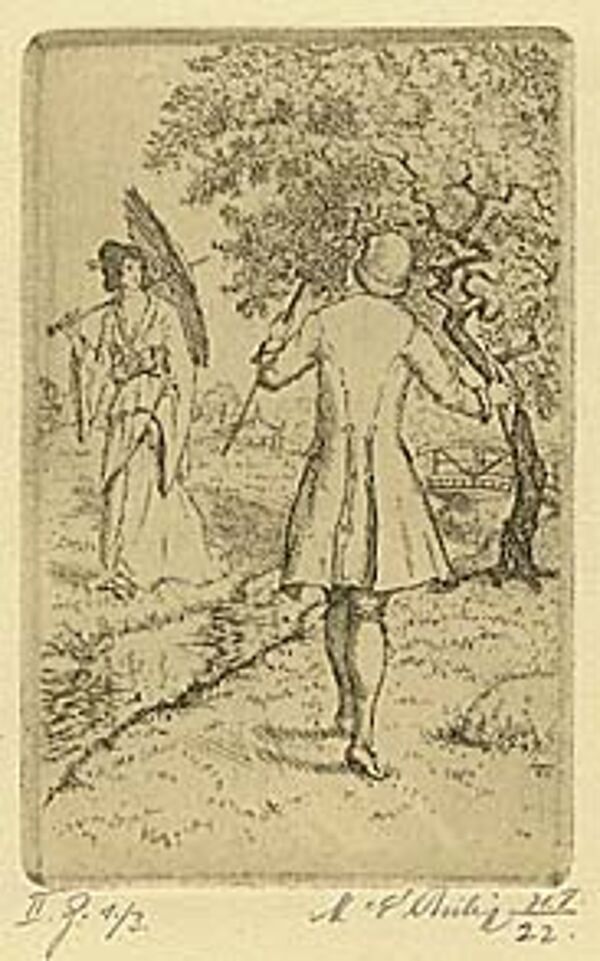 Radierung (II.Z.1/3), Plattenmaße ca. 12 x 7,5 cm, Blattmaße ca. 23,5 x 15,5 cm. Mit der Hand signiert und datiert 31.5.22. Nicht im WVZ Götze.