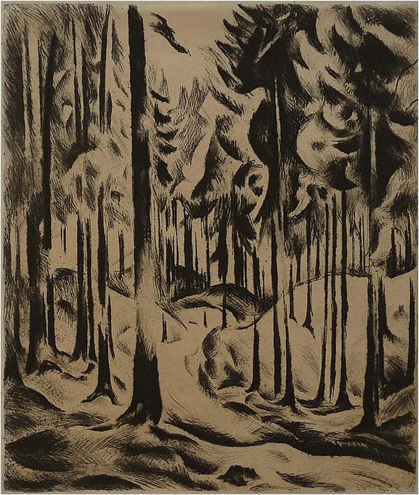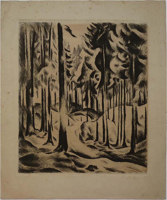 Radierung: ohne Titel (Tannenwald)