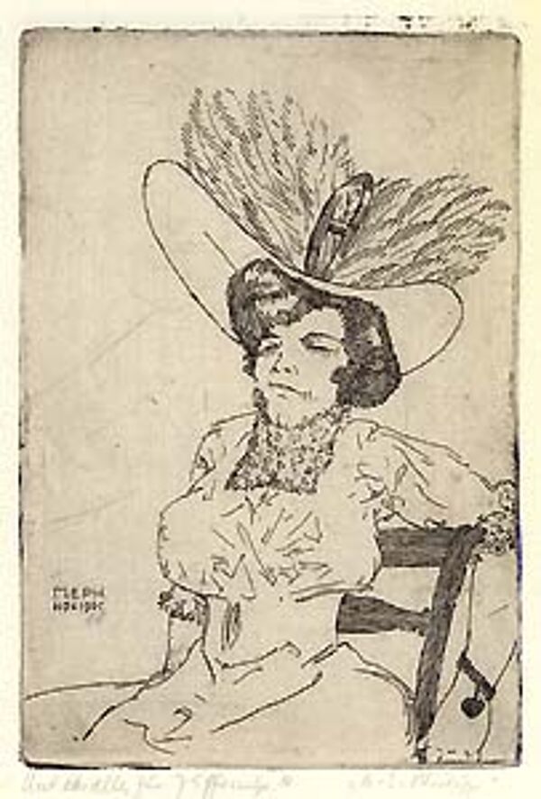 Radierung mit einer Plattengröße ca. 16,2 x 11 cm, Blattmaße ca. 28 x 18 cm, von Hand bezeichnet, signiert, und in der Platte datiert Nov. 1910. Links u. unten unregelmäßige Blattränder, unten kleiner Einriss,Wasserfleck am oberen Blattrand, rückseitig Klebespuren. WVZ Götze A 41.