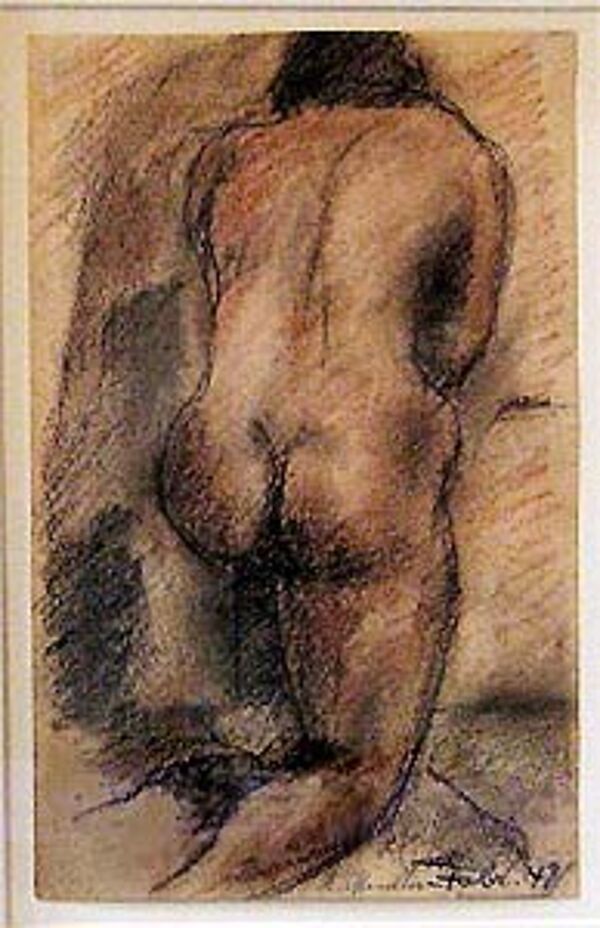Rötelzeichnung: ohne Titel (Rückenakt)