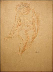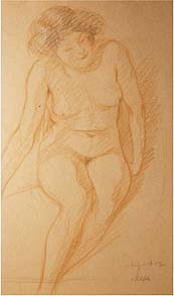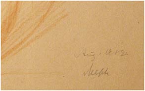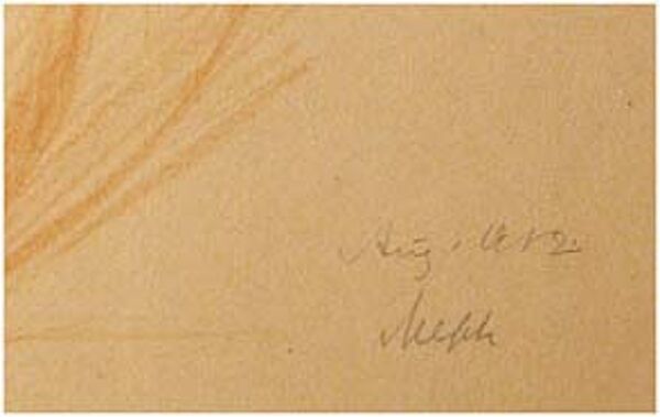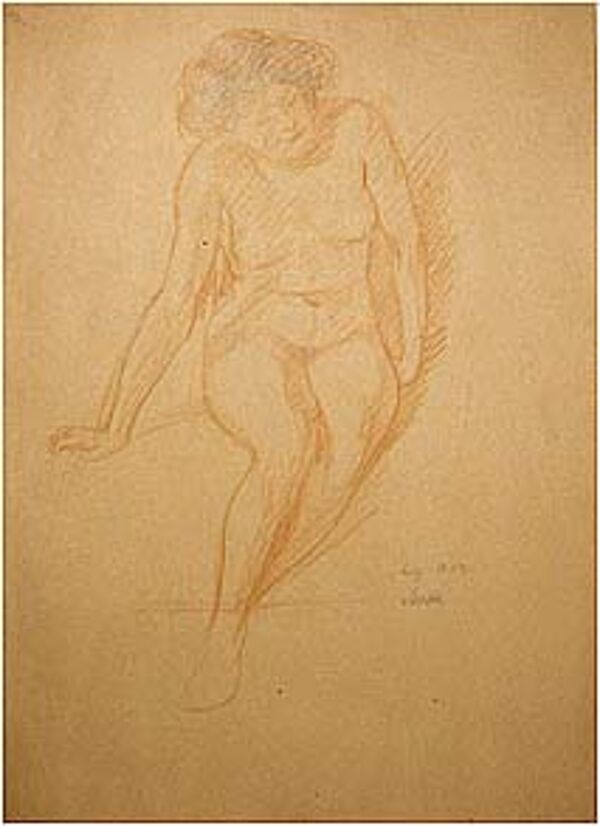 Rötel auf chamoisefarbenem Papier, dieses mit geringen Griffspuren, Blattgröße ca. 43,5 x 32 cm, mit der Hand monogrammiert und datiert Aug. 1912.