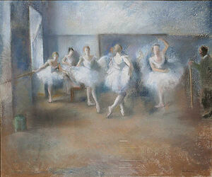 Impressionistisches Ölgemälde: ohne Titel (Junge Fraul bei häuslicher Tätigkeit im Atelier?)