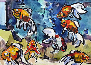 Aquarell: ohne Titel (Fische im Aquarium)
