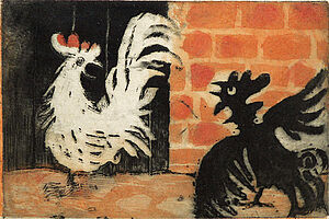 Farbaquatinta: "Hahnenkampf" von 1938