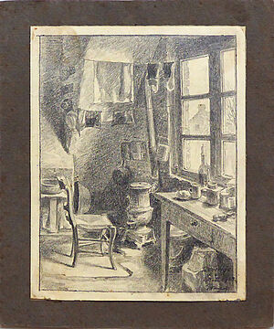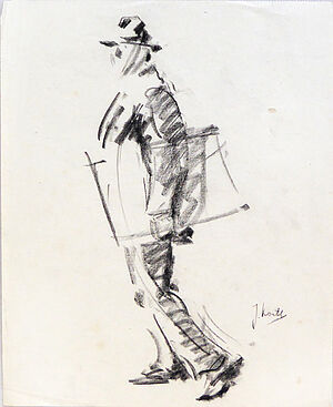 Kohlezeichnung: o.T. (wohl Bildnis oder Selbstbildnis eines Künstlers)