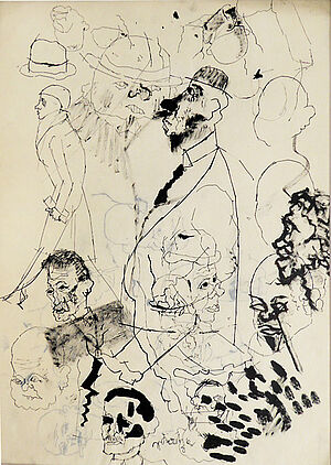 Tuschezeichnung: ohne Titel (Passanten-Studie)